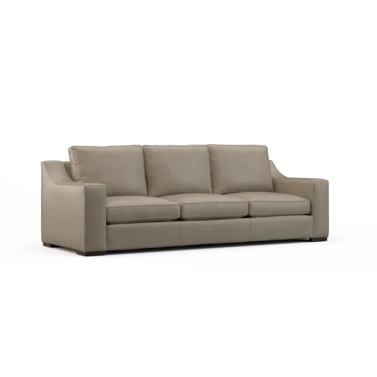 Customization options are available to suit your unique taste and preferences. Choose from a range of custom finishes, designs, and upholstery options to create a one-of-a-kind piece that reflects your personal style. The sofa also comes with three arm options, including sleek slope arms, allowing you to tailor the design to your desired aesthetic.