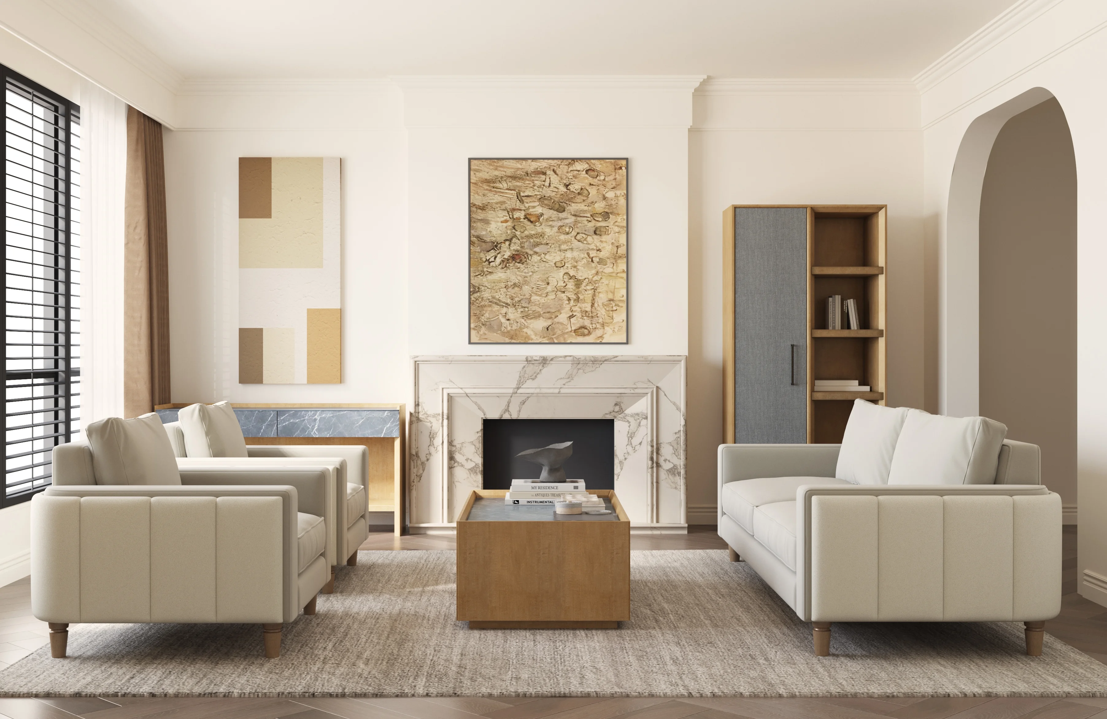 Contemporary 3-Piece Living Room Set with Channel Detailing