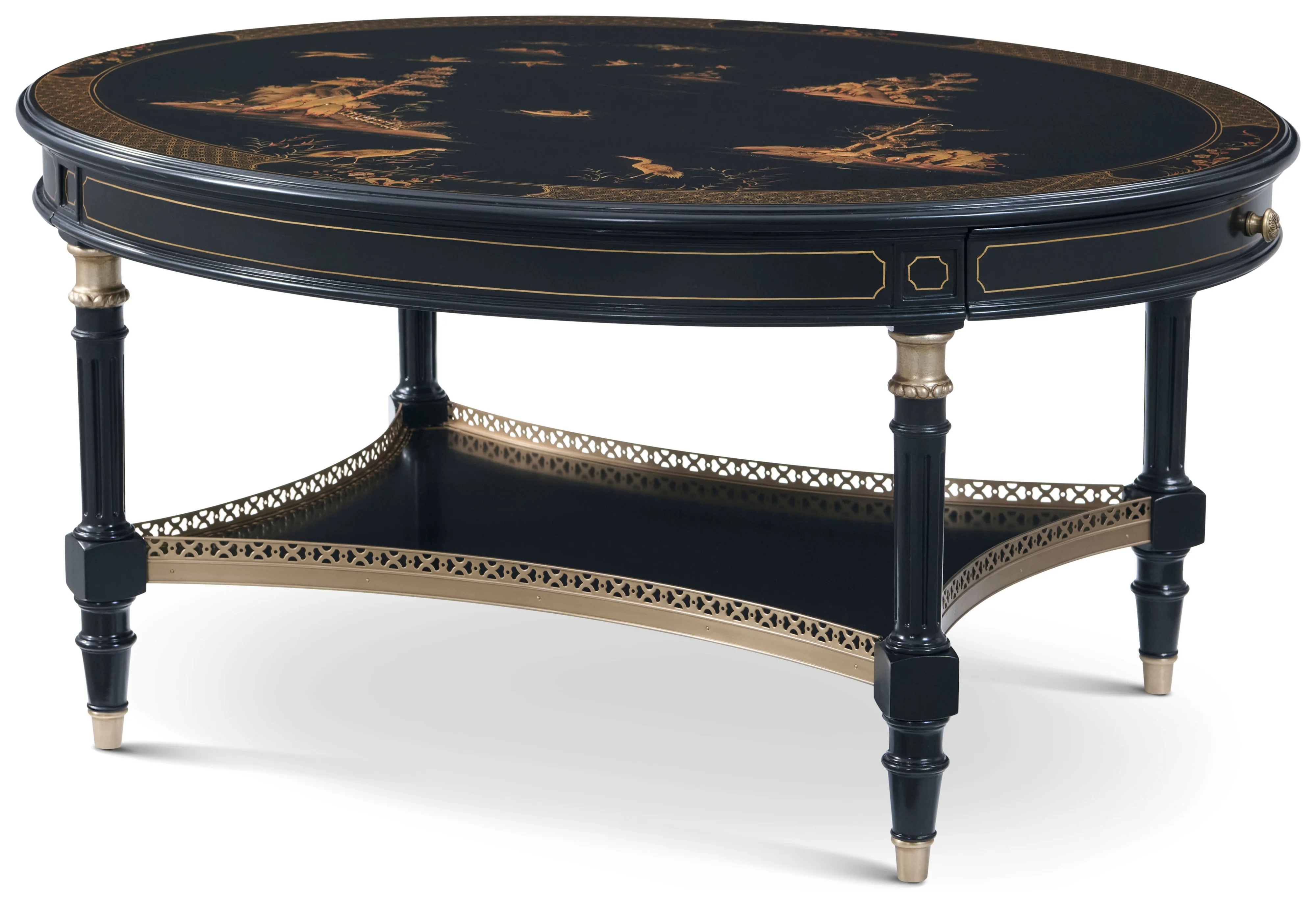 Traditional Ovate Cocktail Table with Lower Shelf
