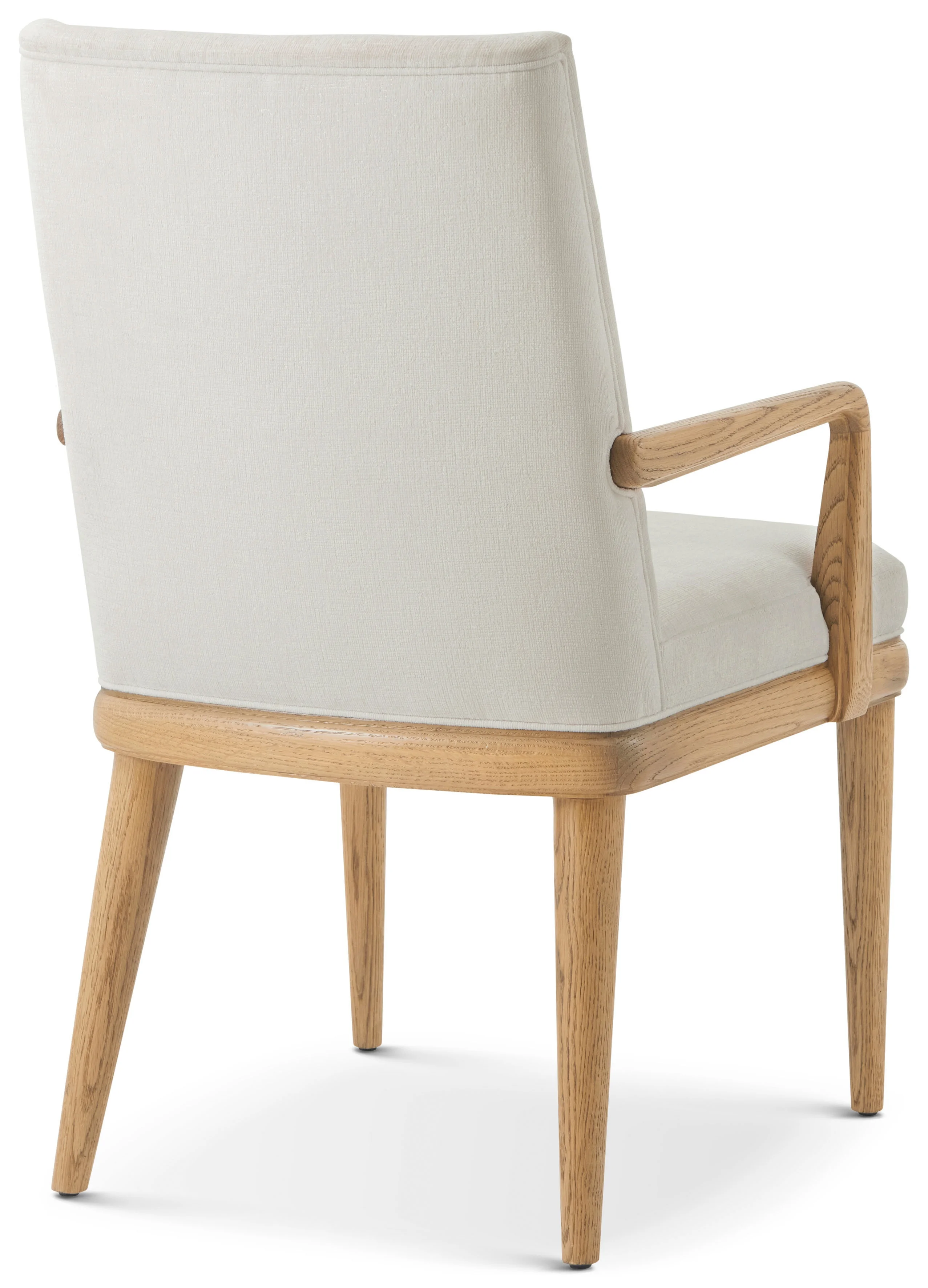 A gently curved white oak silhouette delicately gives way to luxurious upholstery in the Essence Dining Arm Chair.