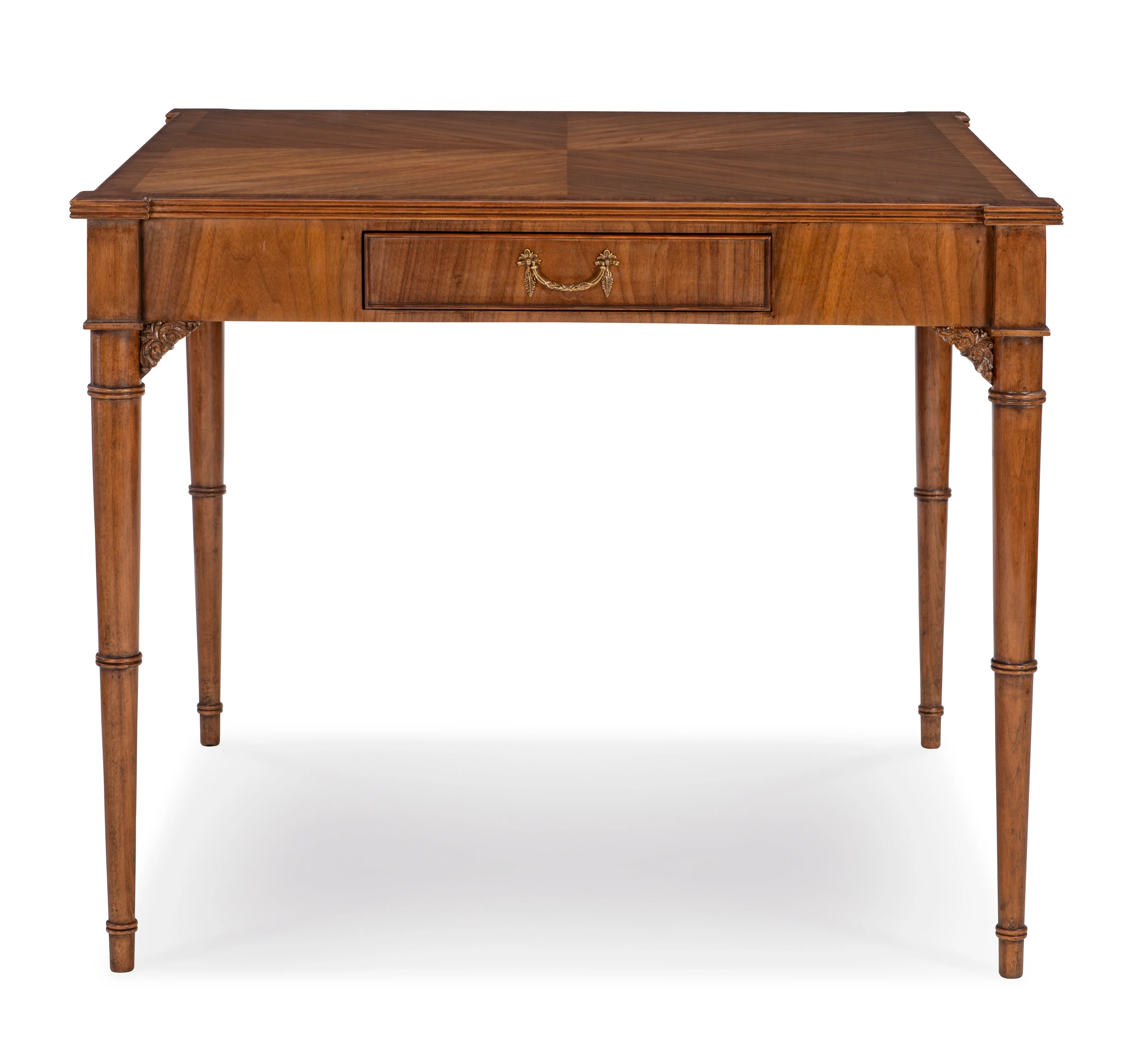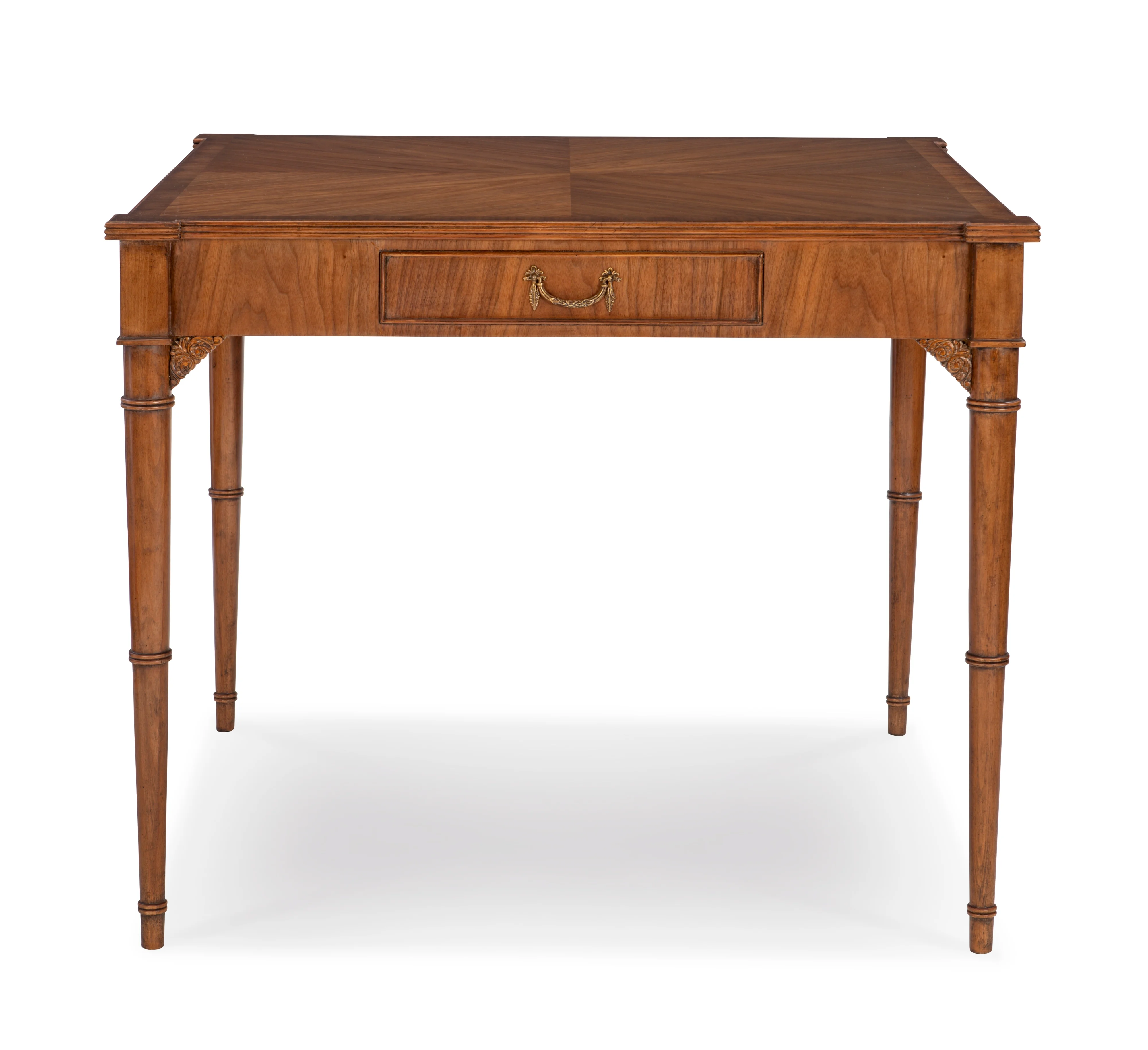 Polished Walnut Card Table with two functioning drawers and brass hardware accents.