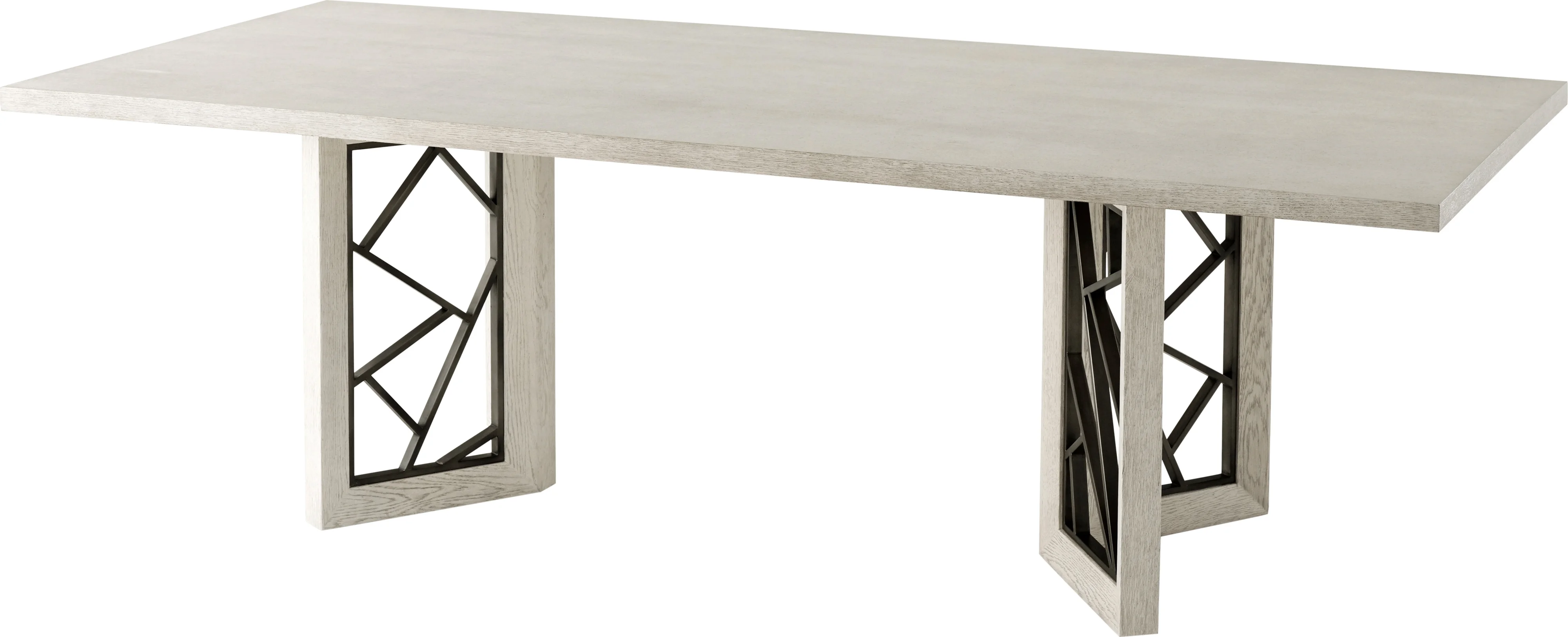 The Isola Contemporary Dining Table with Double Pedestal Base, made by Theodore Alexander,