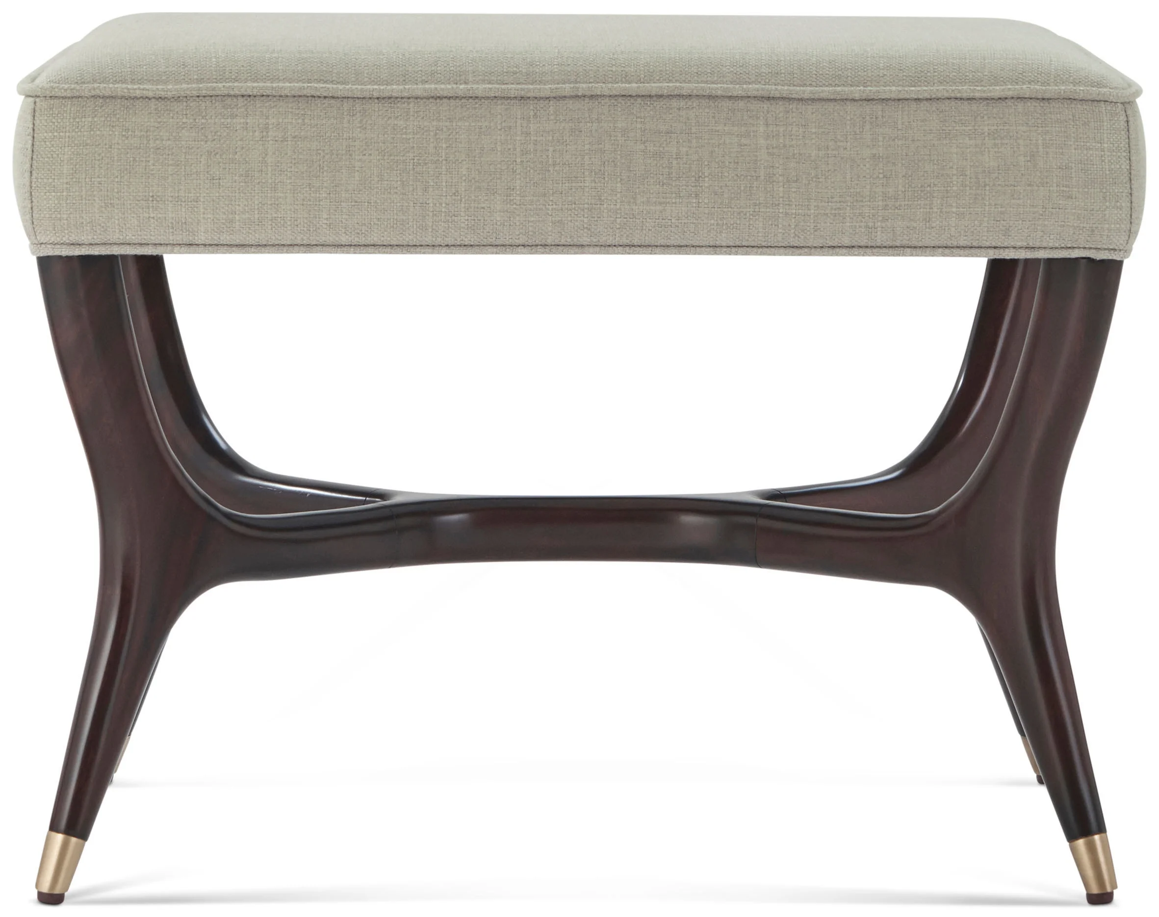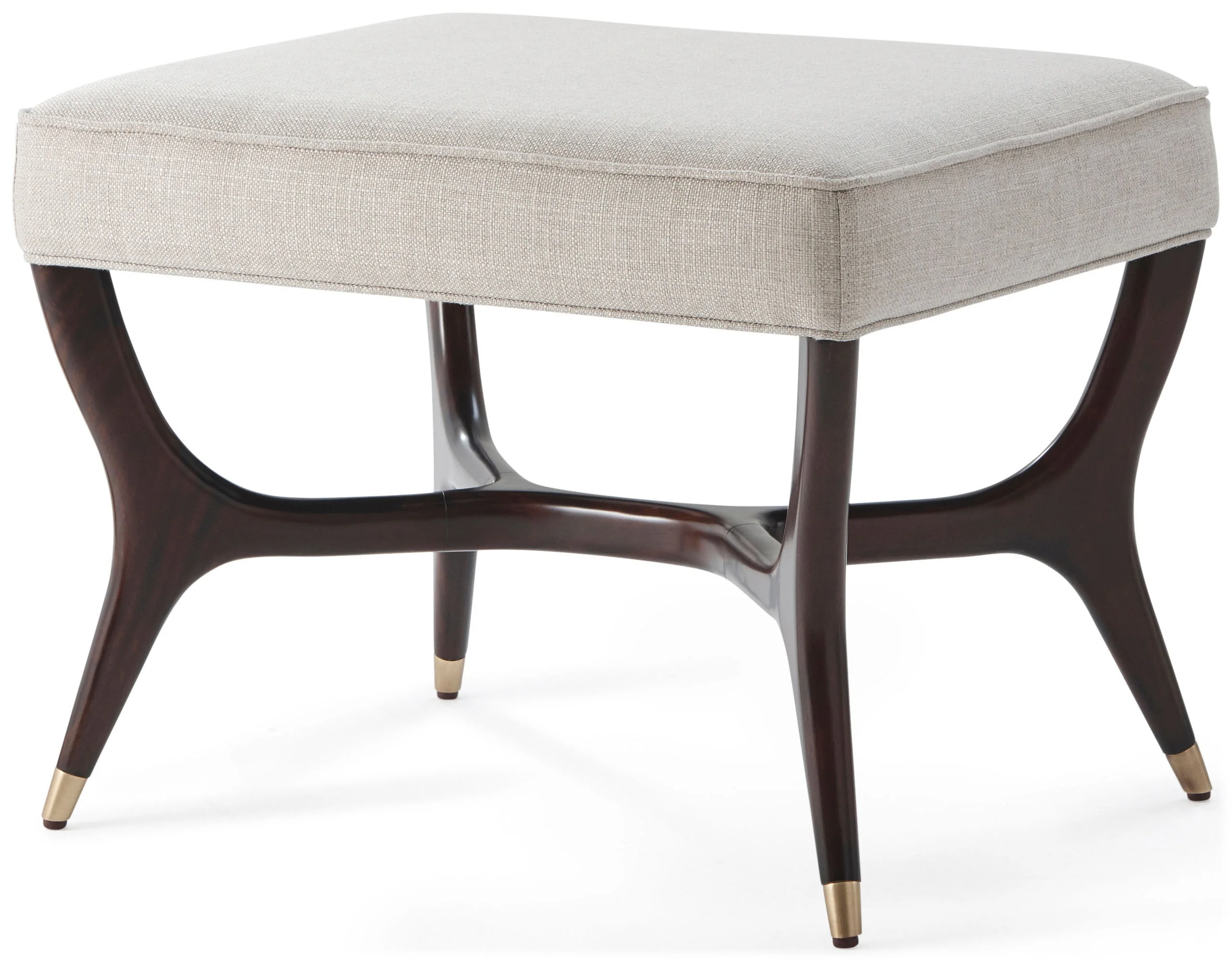 moreThis stylish ottoman is a perfect addition to any modern living space. Its ebonized mahogany wood finish in a dark tone gives it a sleek and sophisticated look, while the brass accented foot caps add a touch of luxury. The solid wood X-trestle base provides stability and support, ensuring the ottoman remains sturdy and secure.