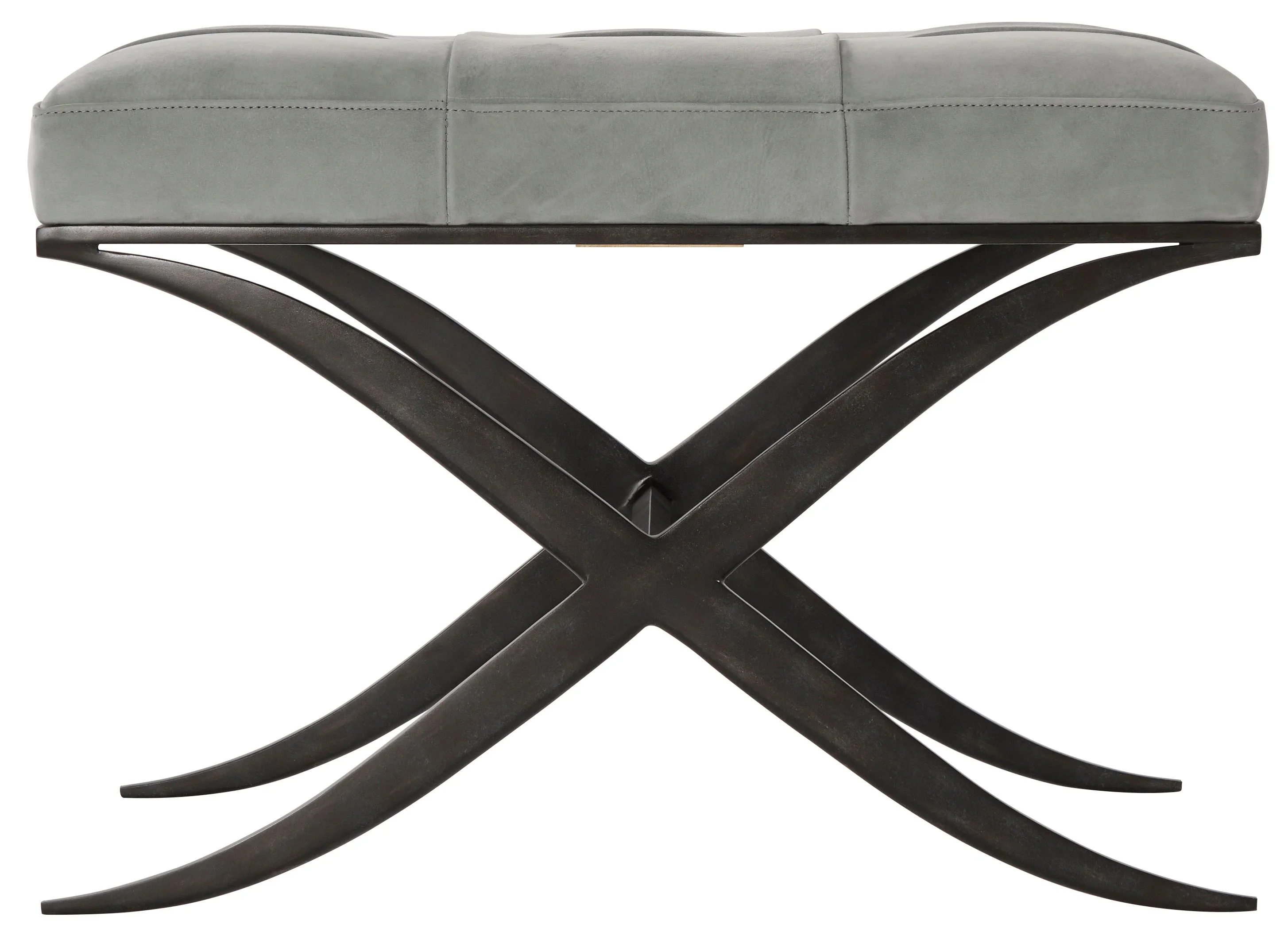 Modern Industrial Steel Sled Ottoman with Tufted Leather Upholstery