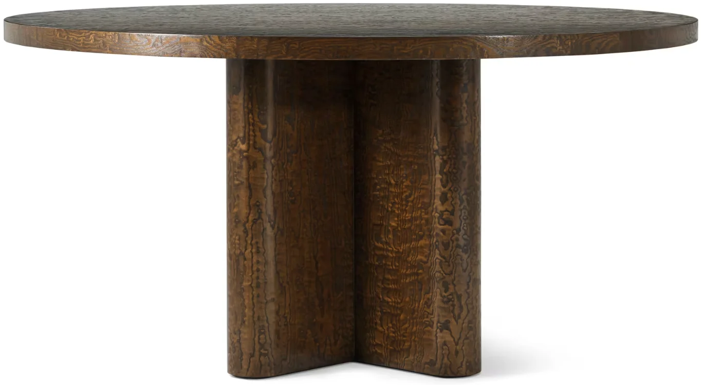The Round Dining Table is a sculptural statement piece. Comfortably seating six, dine in elegance around Tamo ash burl veneer and an exquisite pedestal base.