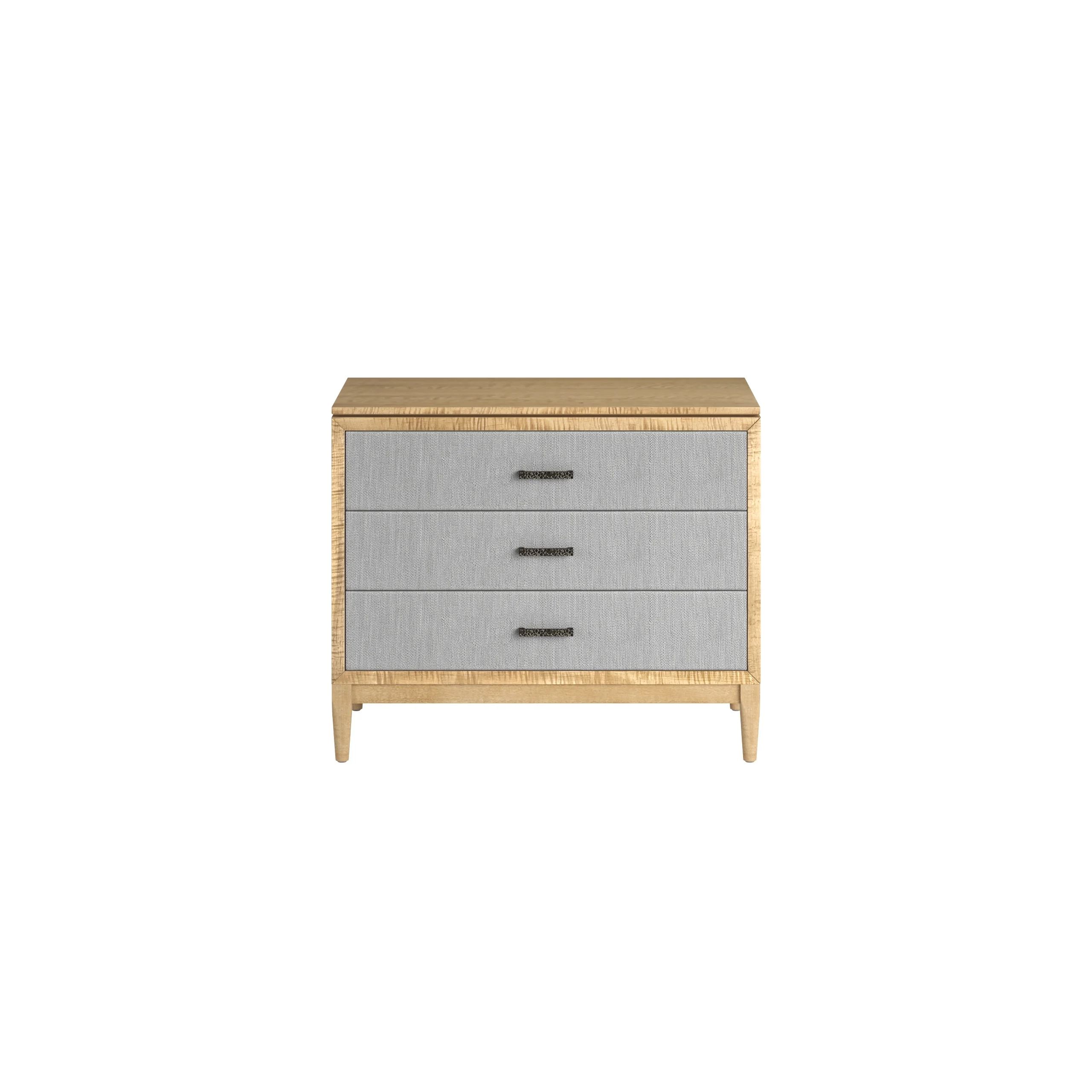 Contemporary 3-Drawer Bedside Chest with Fabric Drawer Fronts