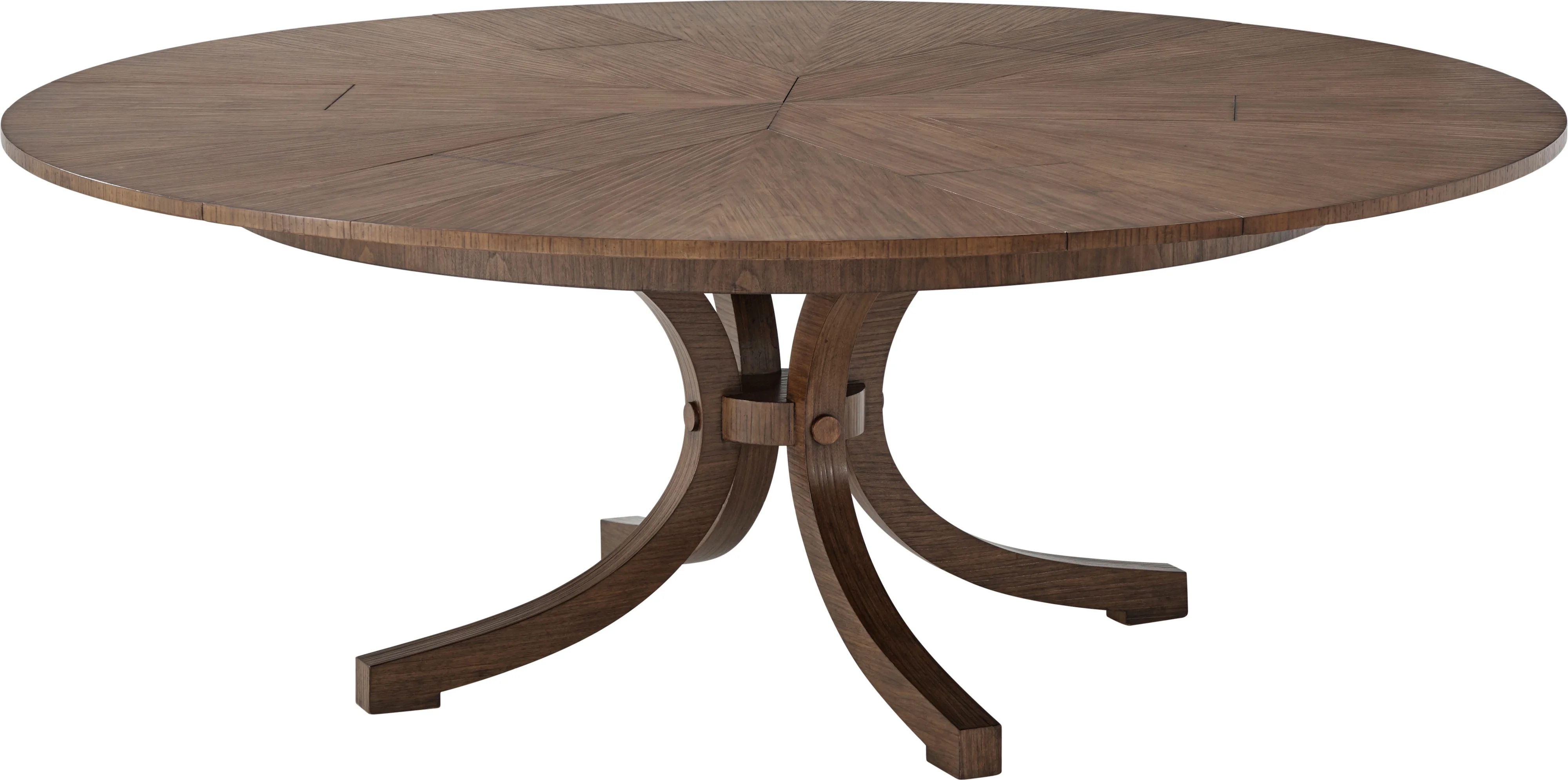 The NoDa Avalon Transitional Dining Table with Leaves, made by Theodore Alexander,