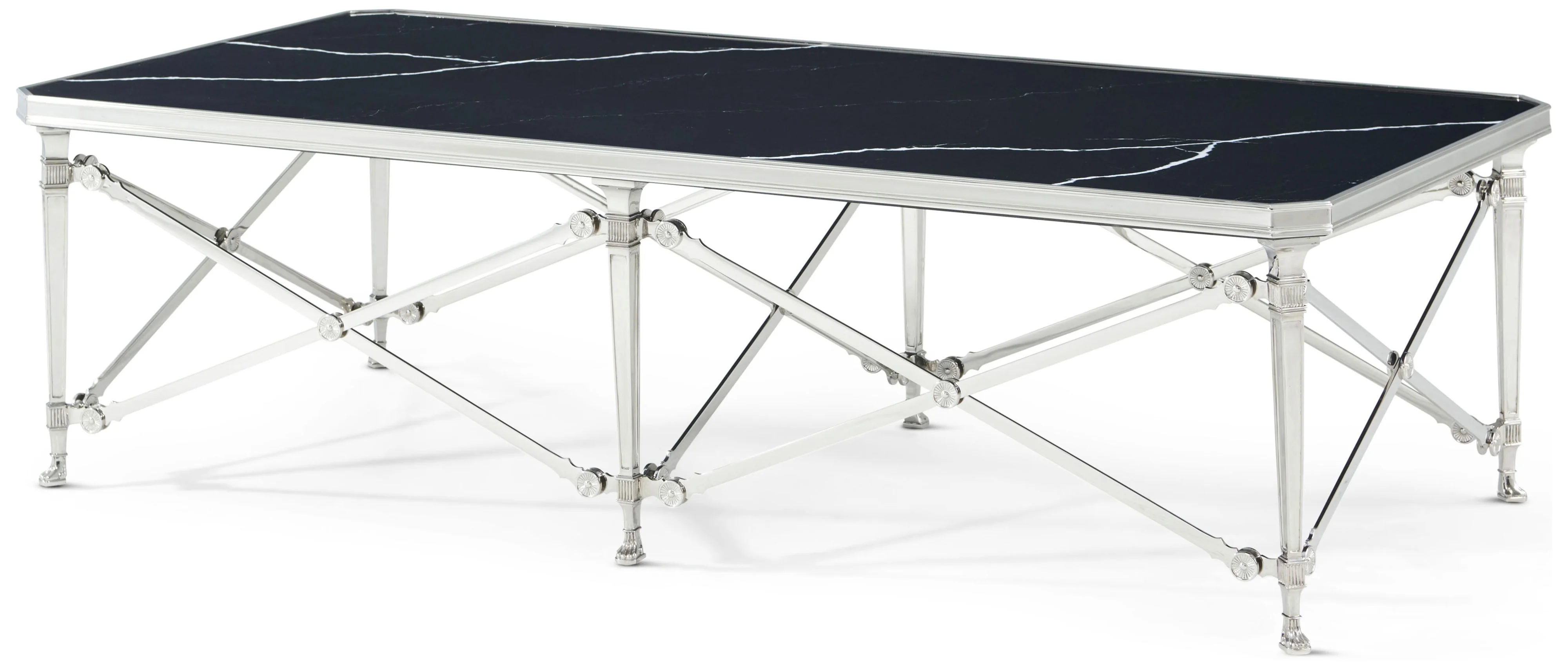 Contemporary Rectangular Nickel Cocktail Table with Black Quartz Top