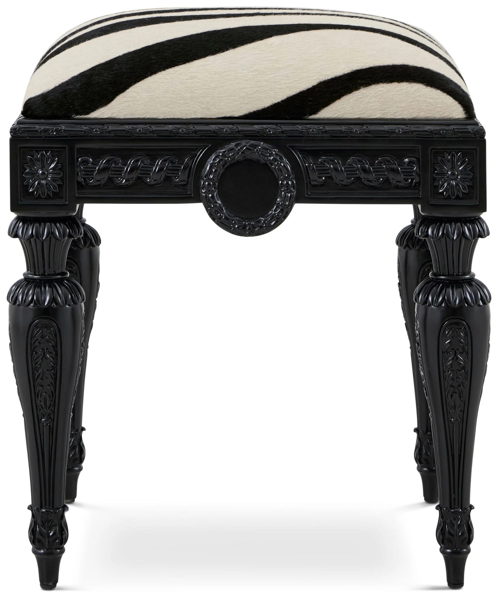The Spencer London Traditional Upholstered Stool with Zebra Pattern, made by Theodore Alexander,