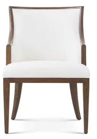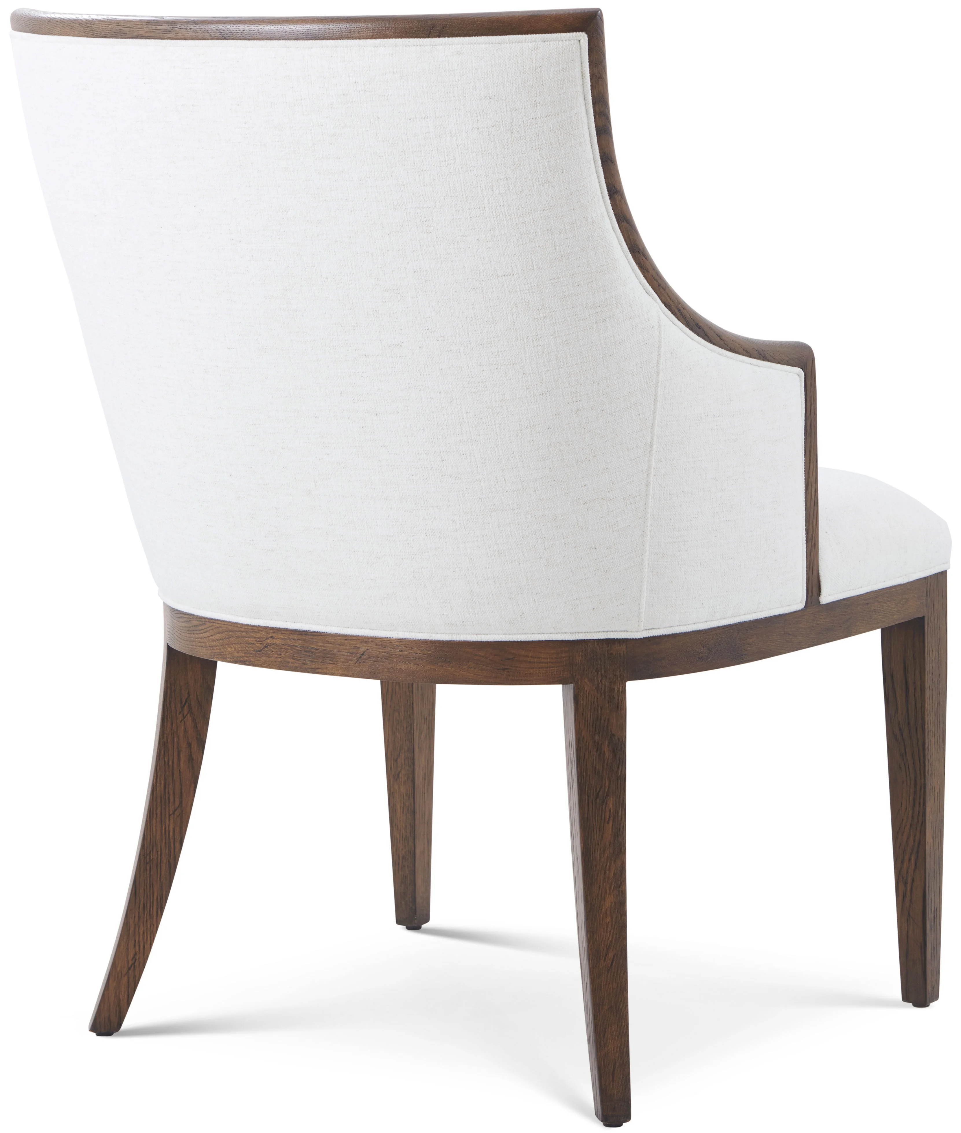 The refined silhouette of the Surrey Armchair offers a transitional take on the clean forms of the early 19th century. Hand Finished in Dover or Brownstone, oak wood gracefully outlines a generously upholstered back and seat.