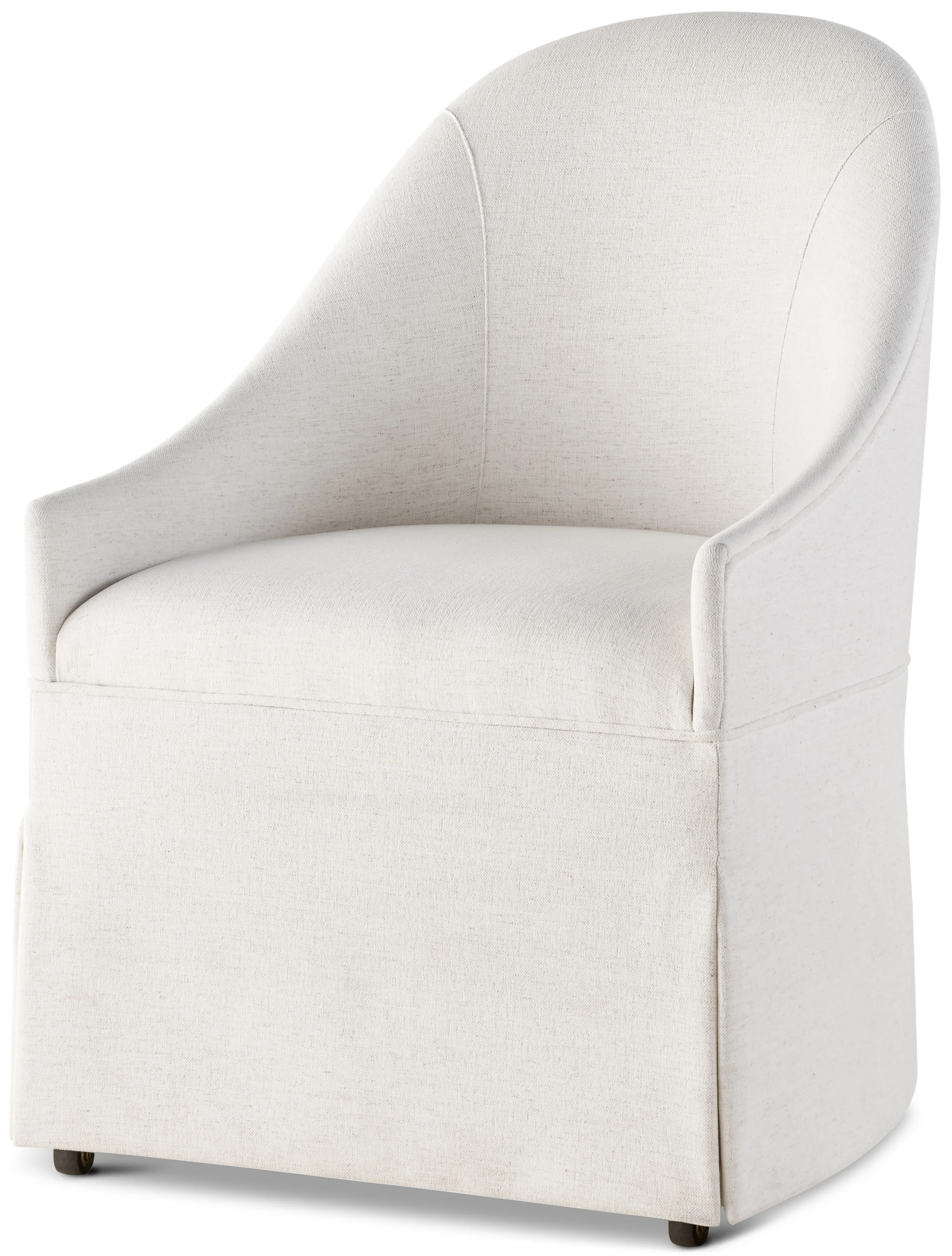 In the generously upholstered Surrey Dining Chair, slender lines follow a polished silhouette along the arms and down.
