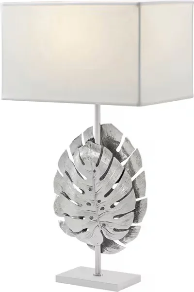 Balazo Table Lamp in Nickel Plated Brass with Linen Rectangular Shade