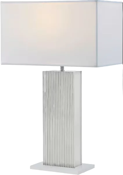 The TA Illuminations Contemporary Nickel Plated Brass Table Lamp with Linen Rectangular Shade, made by Theodore Alexander,
