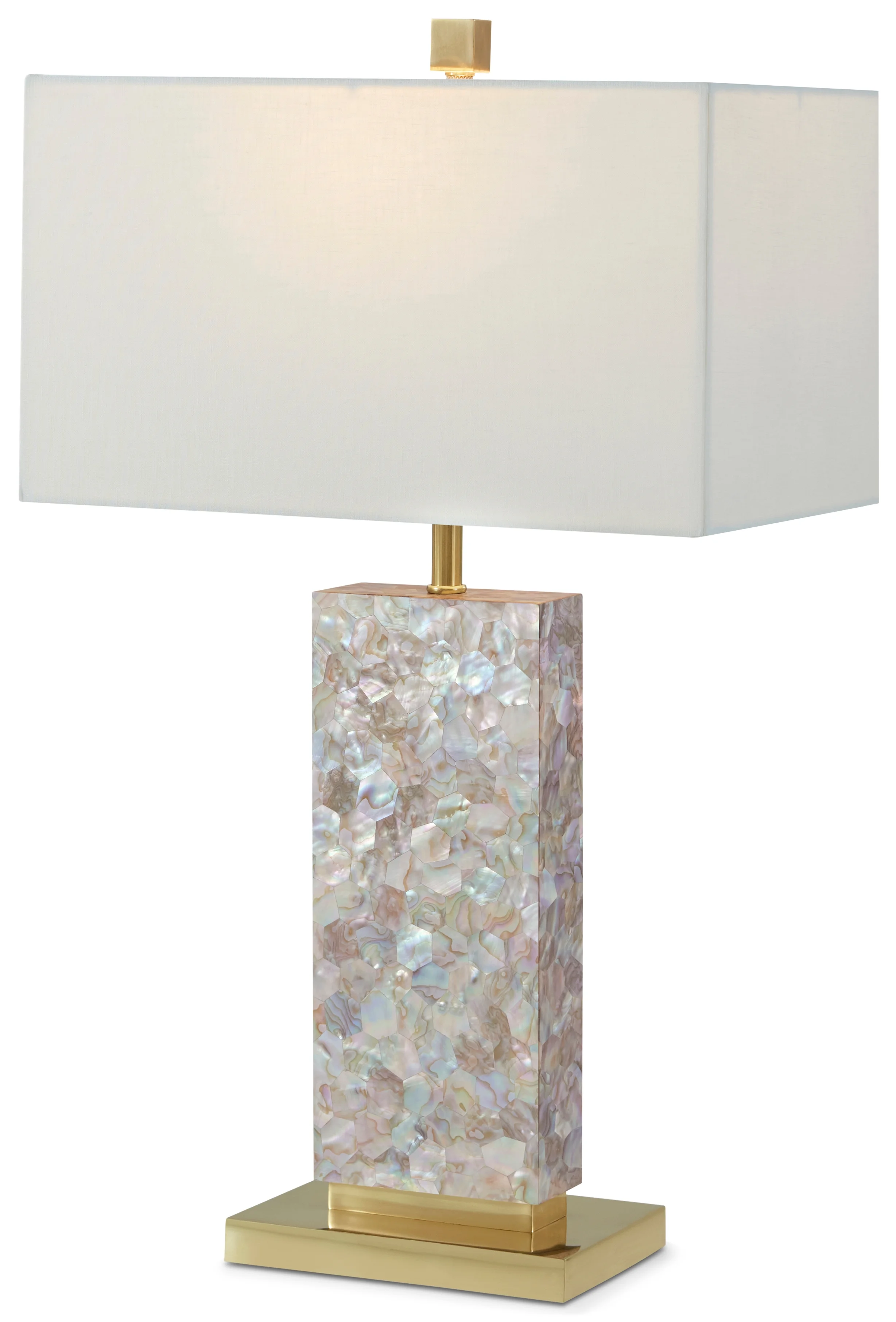 Viola Table lamp with Polished Brass and Mother of Pearl Details with Linen Rectangular Shade