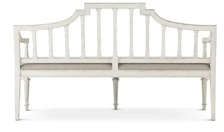 - Molded Angular Arched Back Rail with Carved & Fluted Slats