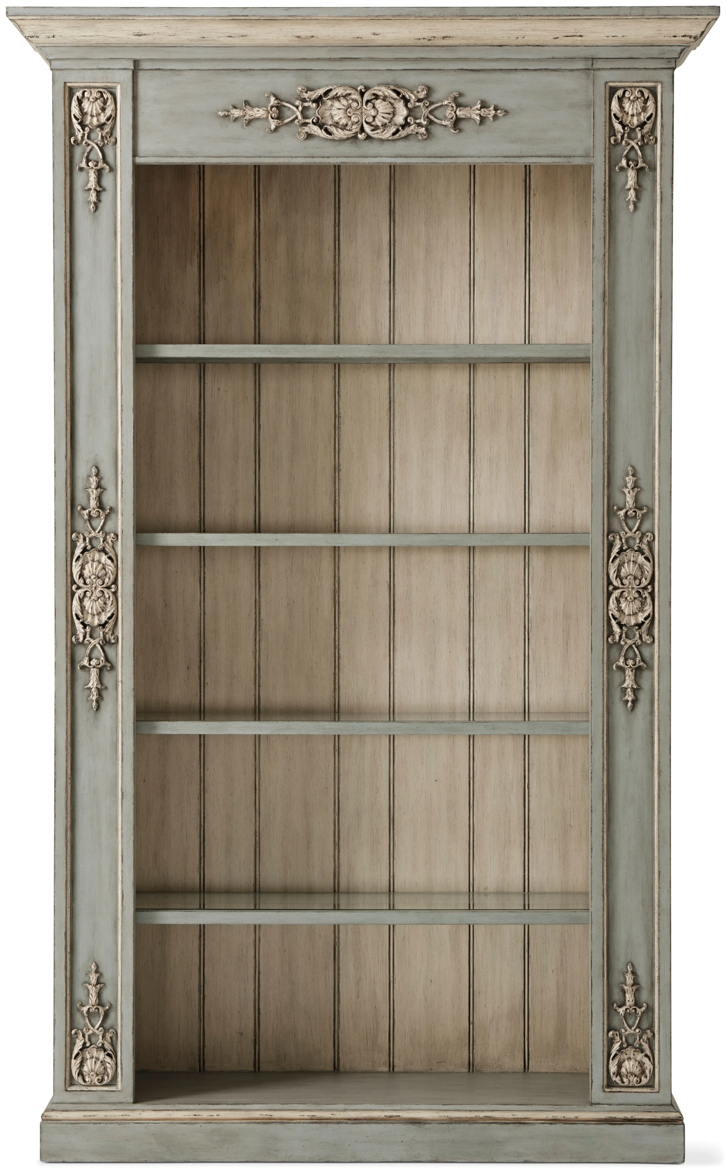 moreMolded Cornice above Shell & Leaf Carved Medallion Panel Frieze & Uprights